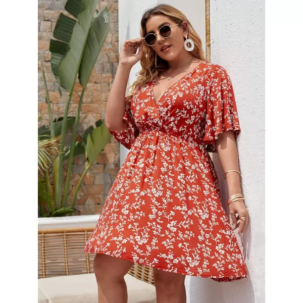 Floerns Women’s Plus Size Striped Print Wrap V Neck Short Sleeve A Line Dress(Red Floral)