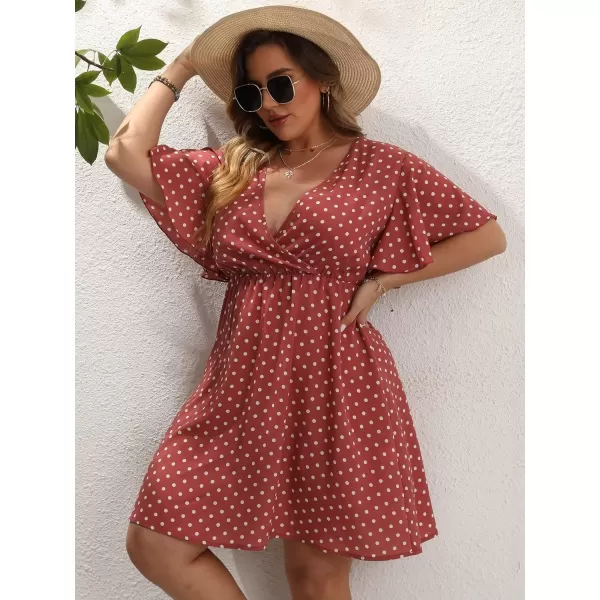 Floerns Women’s Plus Size Striped Print Wrap V Neck Short Sleeve A Line Dress(Redwood)