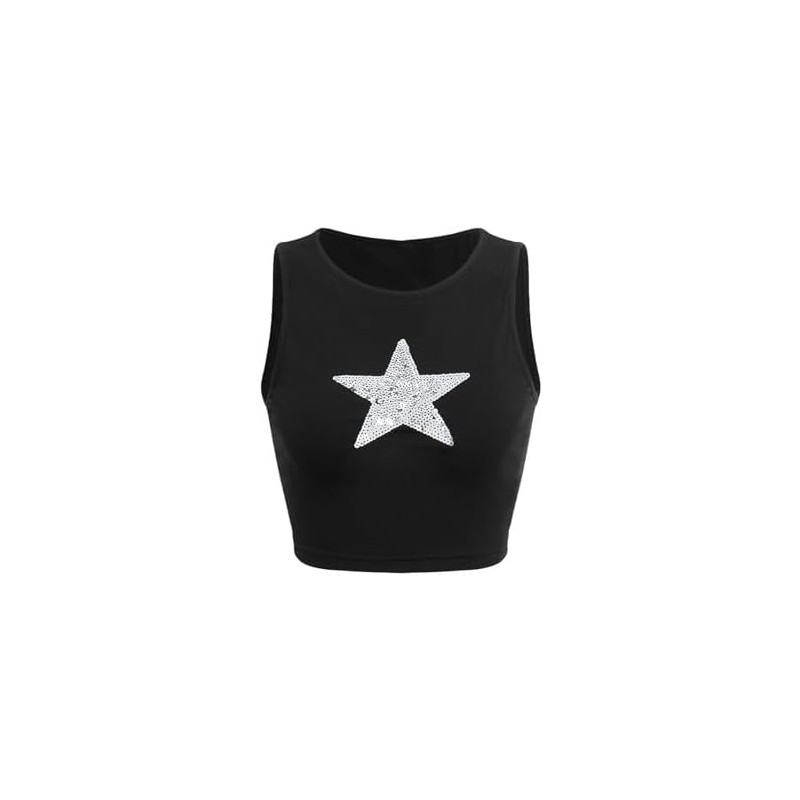 Floerns Women’s Printed Crop Slim Fit Sleeveless Crew Neck Tank Crop Top(Black)
