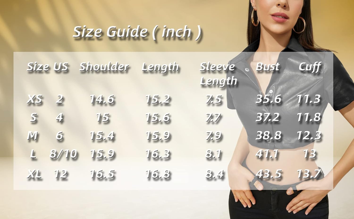 Get more for your money with our exclusive bundle deals on Floerns Women’s Pu Leather Short Sleeve Button Down Shirt Blouse Crop Top and accessories.