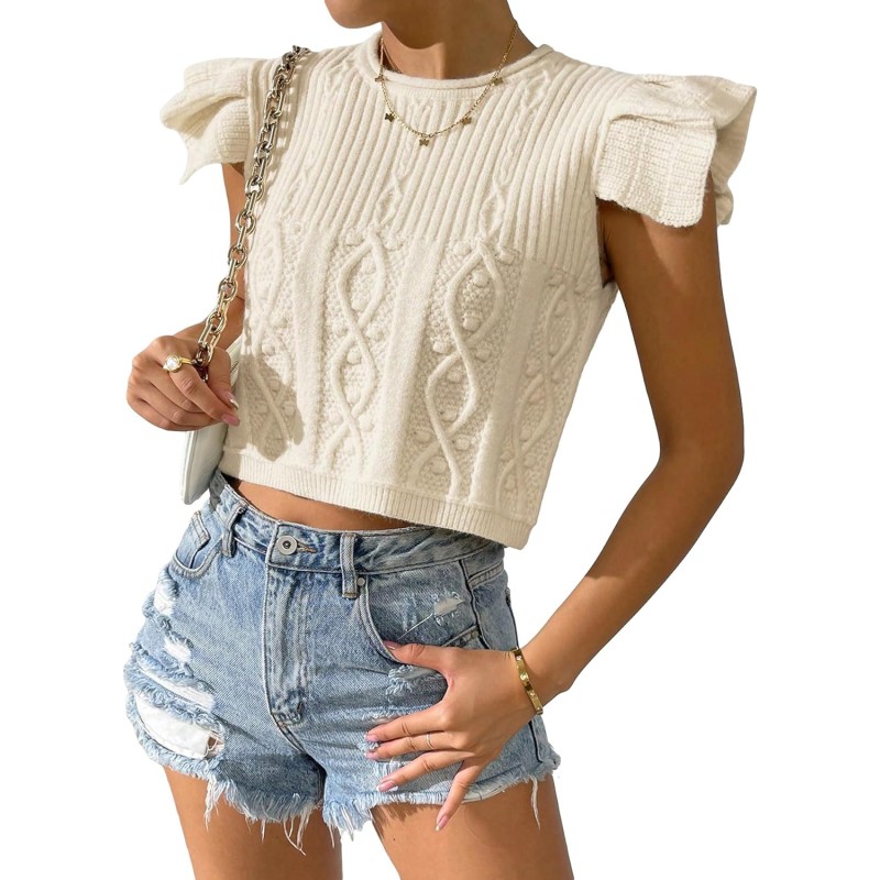 Score big savings on Floerns Women’s Rib Knitted Flutter Sleeve Textured Crew Neck Sweater Crop Tank Tops during our back-to-school sale. Limited quantities available.