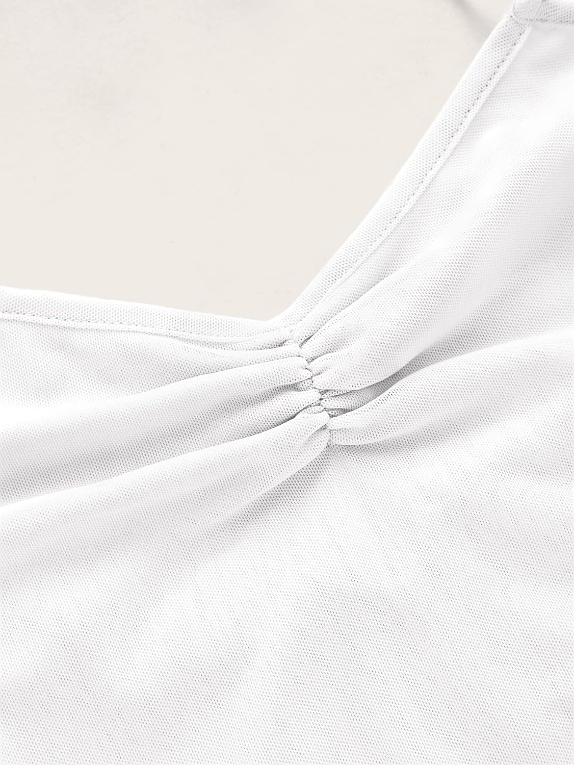Floerns Women’s Ruched Sleeveless Halter Neck Tie Back Hanky Hem Crop Cami Top(White)
