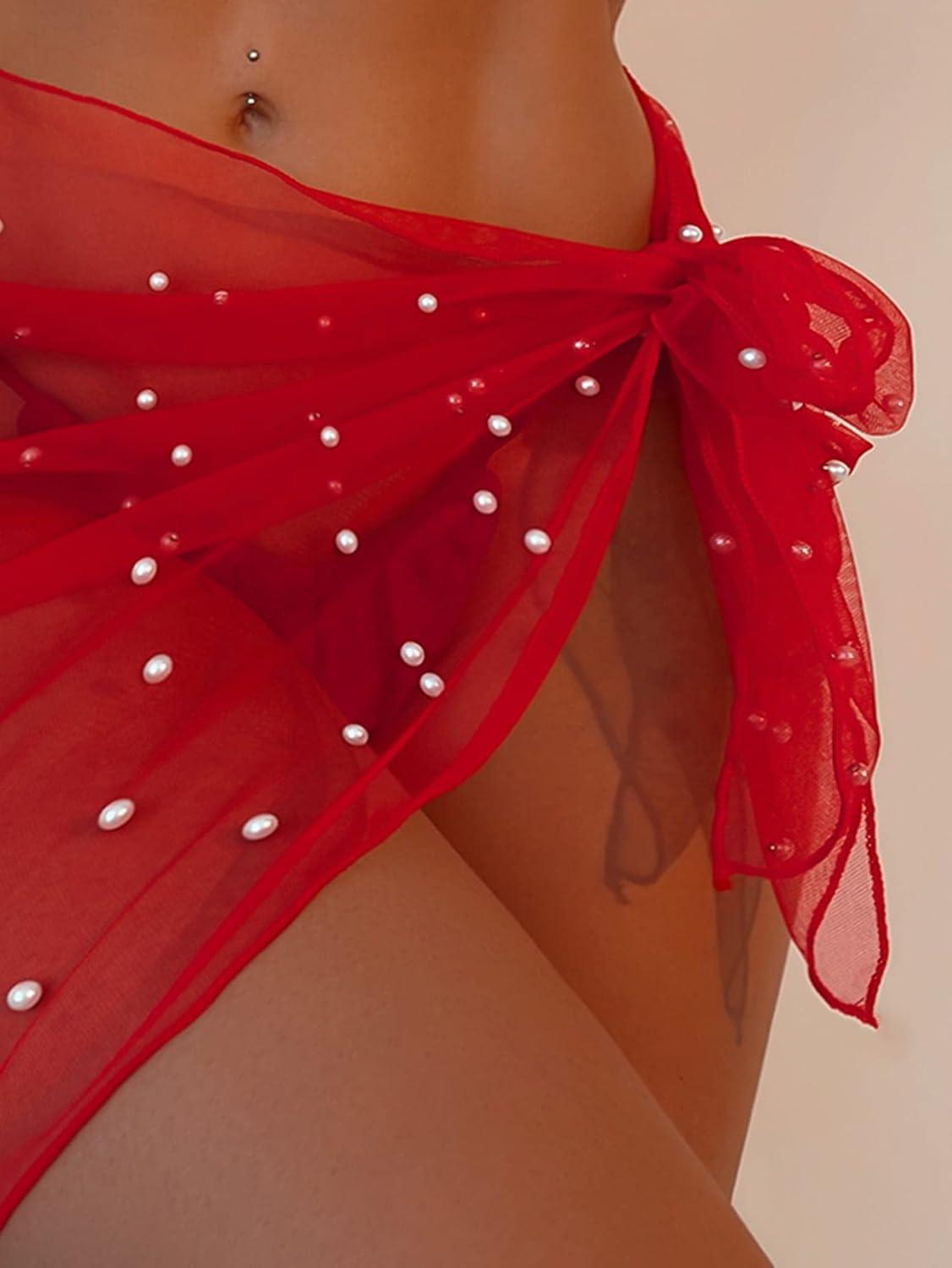 Floerns Women’s Sheer Beach Swimwear Cover Up Wrap Mini Skirt(Red)