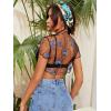 Floerns Women’s Sheer See Through Mock Neck Star Pattern Mesh Blouse Tops without Bra(Black Blue Multi)