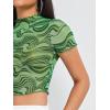 Floerns Women’s Sheer See Through Mock Neck Star Pattern Mesh Blouse Tops without Bra(Green Marble)