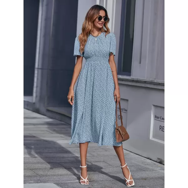 Floerns Women’s Short Sleeve Boho Floral Dress A Line Smocked Midi Dress(B-blue Floral)