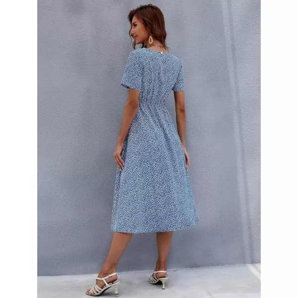 Floerns Women’s Short Sleeve Boho Floral Dress A Line Smocked Midi Dress(Blue and White)