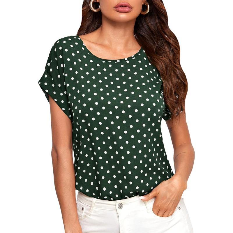Floerns Women’s Short Sleeve Business Casual Tops Graphic Print Office Work Blouse Tops(Dark Green)
