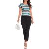 Floerns Women’s Short Sleeve Office Blouse(Green White Striped)