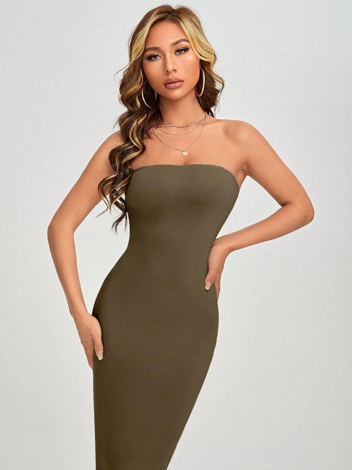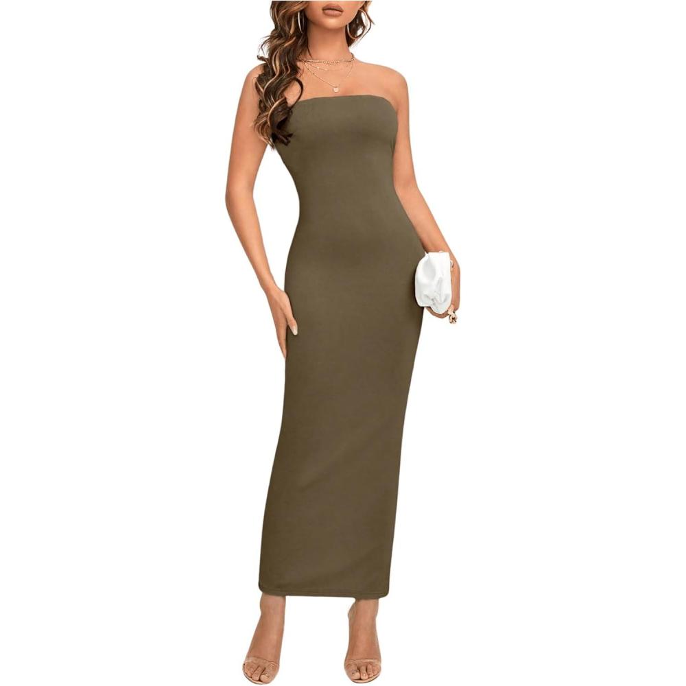 Floerns Women’s Sleeveless Tube Top Sexy Strapless Bodycon Maxi Club Dress(Army Green)