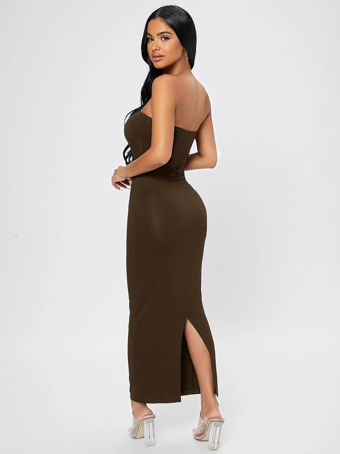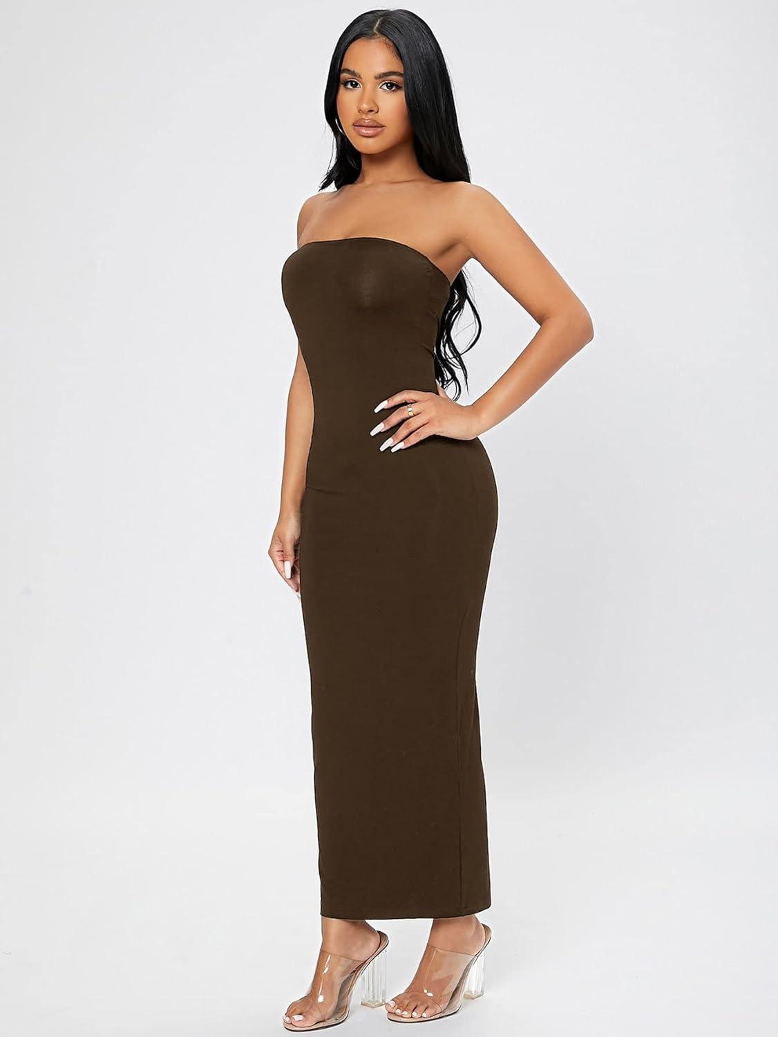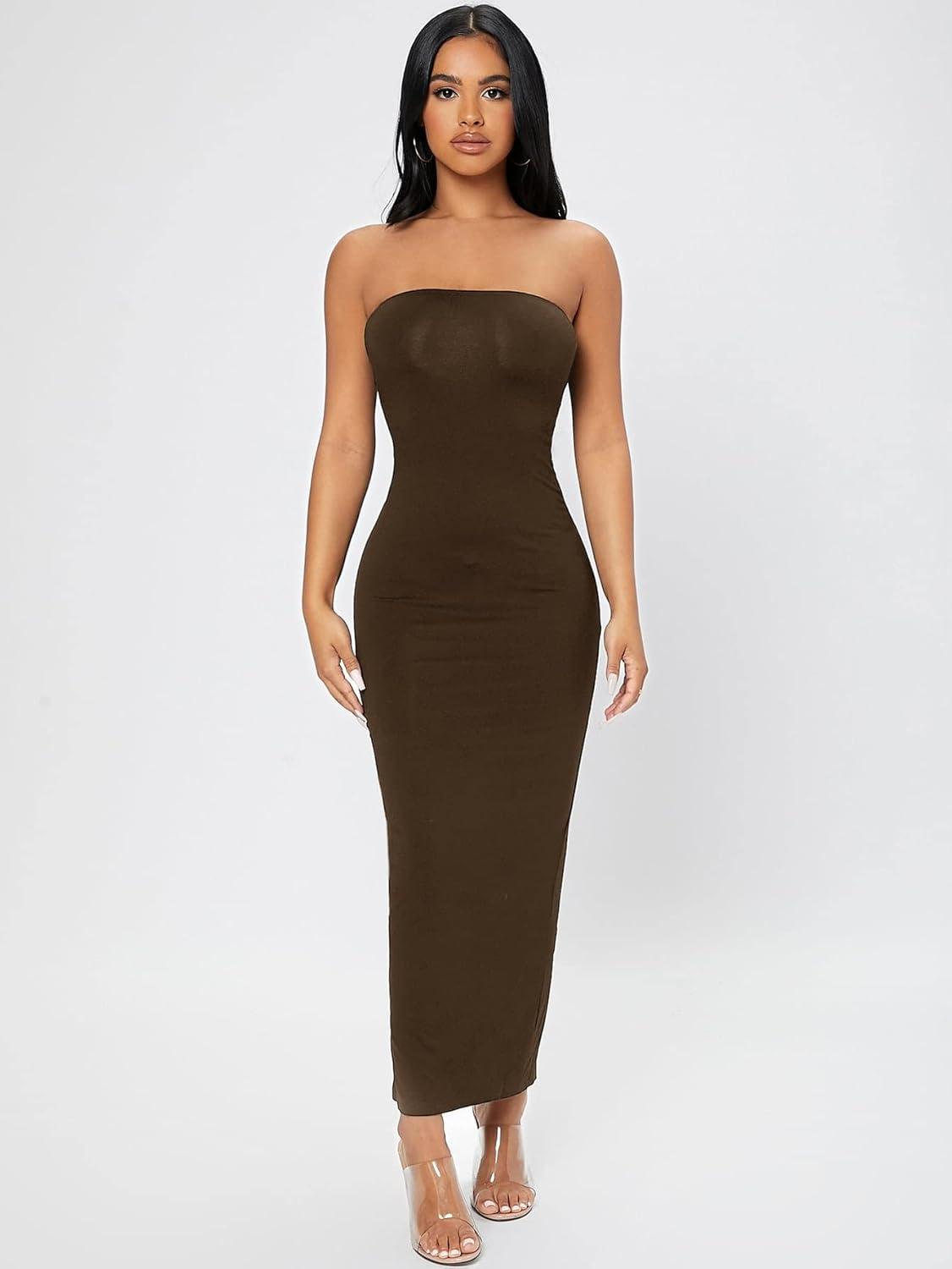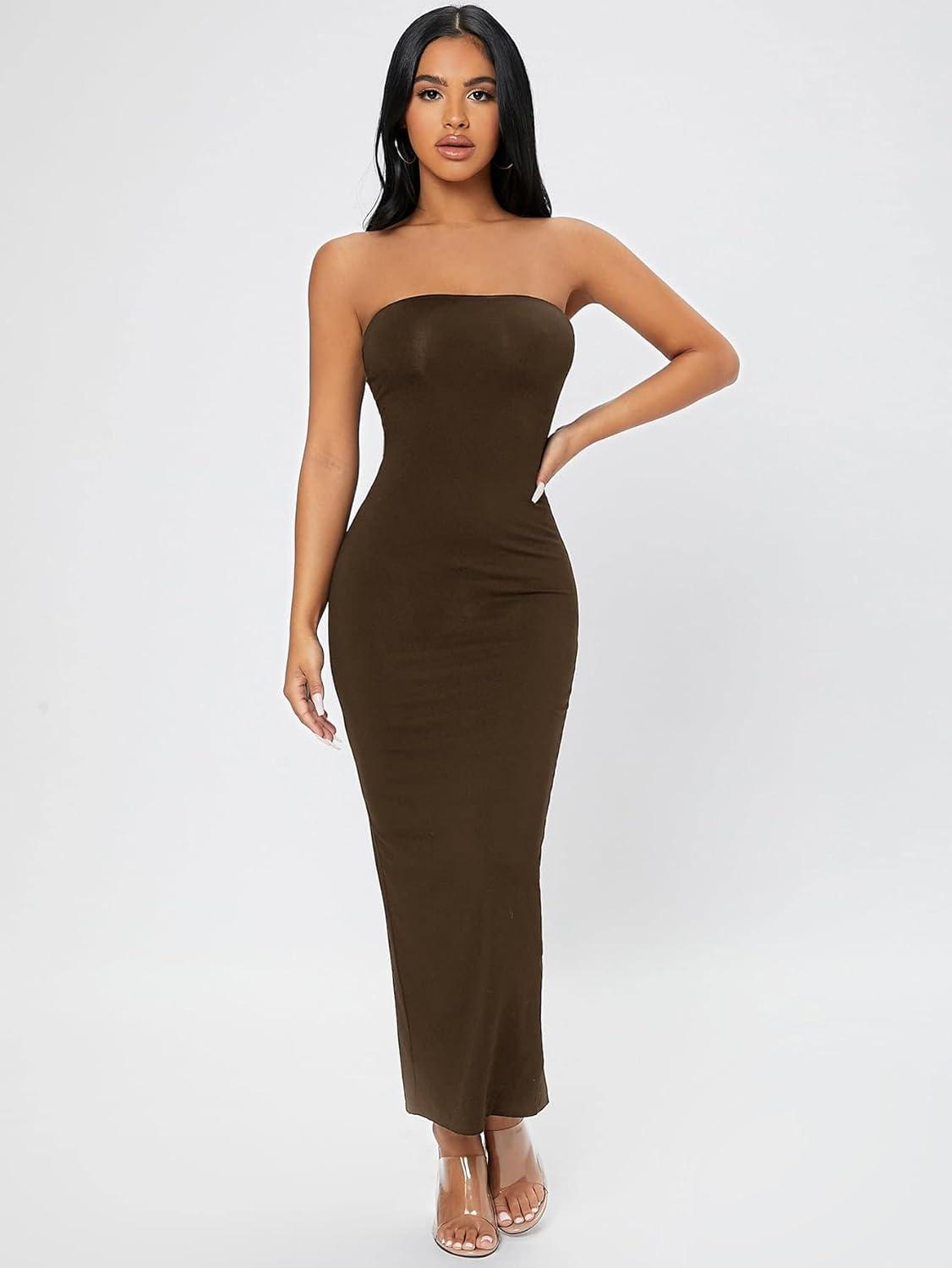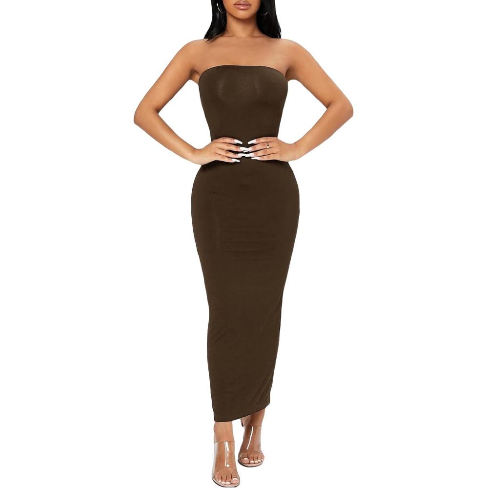 Floerns Women’s Sleeveless Tube Top Sexy Strapless Bodycon Maxi Club Dress(Chocolate Brown)
