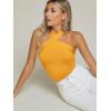 Floerns Women’s Solid Criss Cross Halter Top Sleeveless Tee Shirt(Yellow Solid)