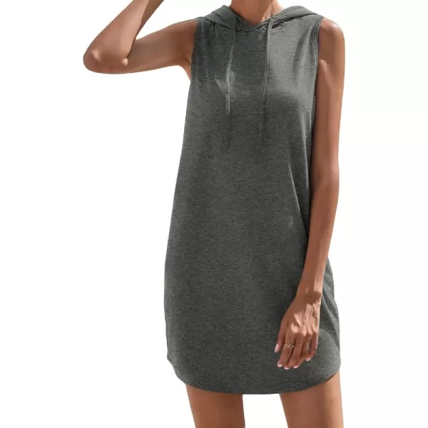 Floerns Women’s Drawstring Solid Sweatshirt Dress Casual Short Sleeveless Hoodie Mini Dress(Dark Grey)