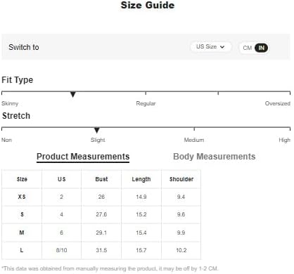 X-Small: Shoulder: 9.4″, Length: 14.9″, Bust: 26.0″