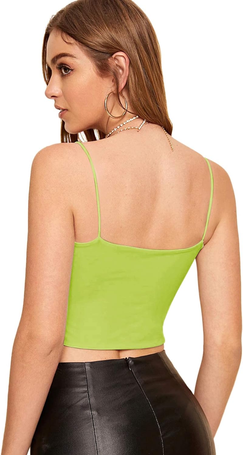 Floerns Women’s Summer Spaghetti Strap Sleeveless Sexy Rave Cut Out Cami Crop Top(Mustard Yellow)