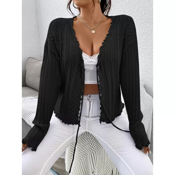 Don’t miss out on our limited-time offer: buy Floerns Women’s Tie Front Lettuce Trim V Neck Long Sleeve Cardigan Crop Top(Black), get {accessory} 50% off!