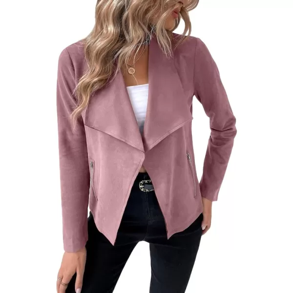 Floerns Women’s Waterfall Collar Long Sleeve Open Front Suedette Jacket(Apricot)